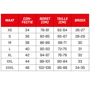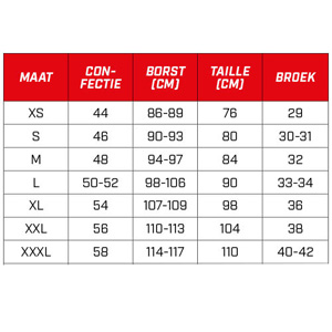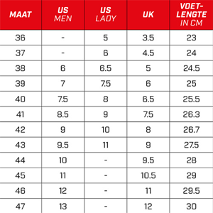 Dit is een algemene maattabel en kan iets afwijken per merk. Lukt het niet om de juiste maat te vinden? Neem dan contact met ons op.